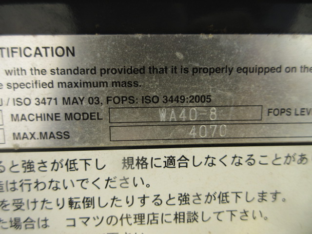Specifications - KOMATSU WA40-8NO