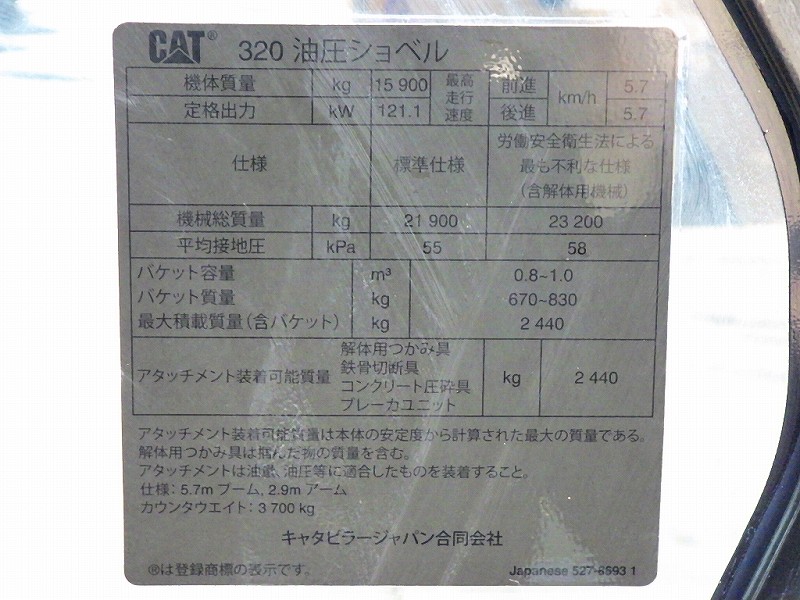Specifications - CATERPILLAR 320