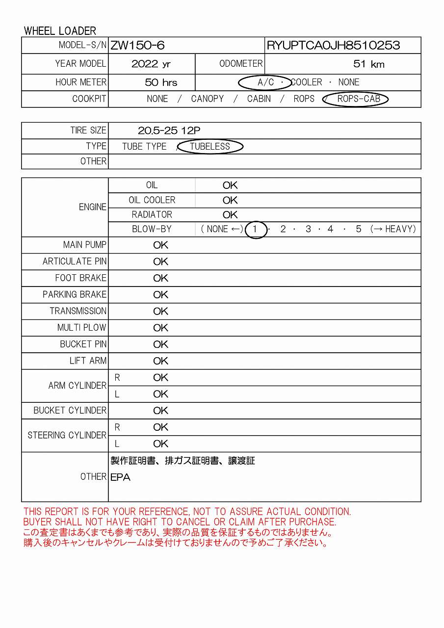 ROPS-CAB, 20.5-25 12P, AC, EPA, 51km, 製作証明書、排ガス証明書、譲渡証