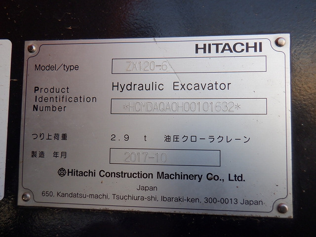 Specifications - HITACHI ZX120-6