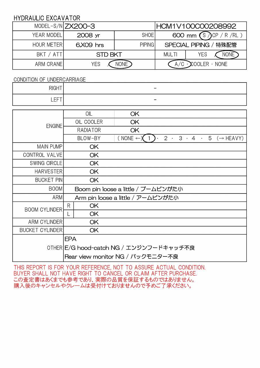 Specifications - HITACHI ZX200-3
