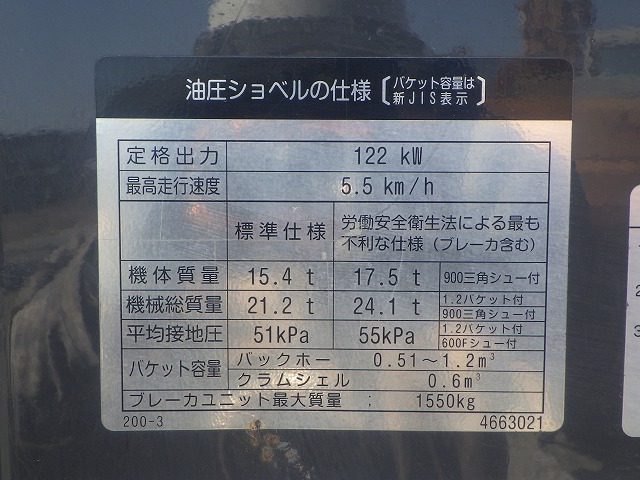 Specifications - HITACHI ZX200-3