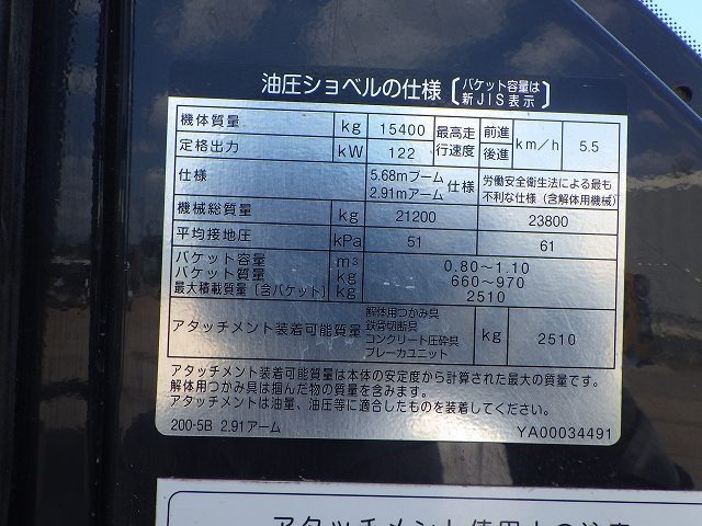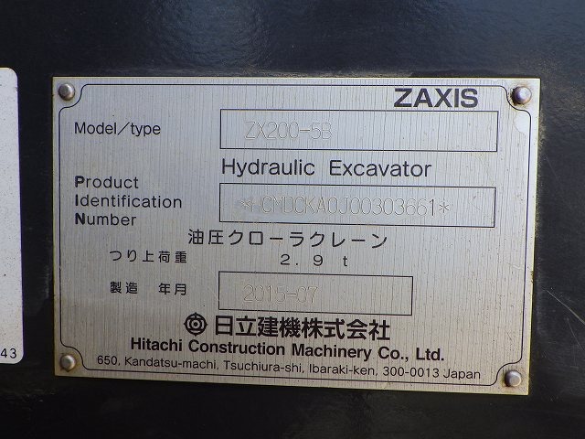 Specifications - HITACHI ZX200-5B