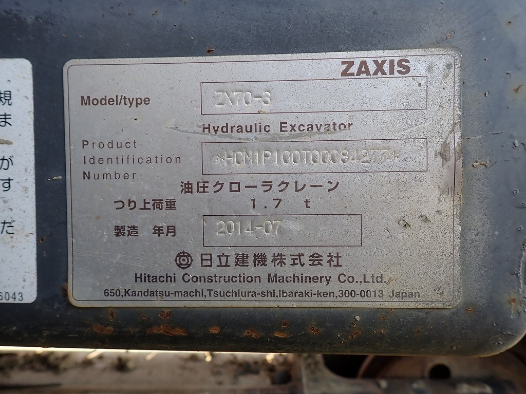 Specifications - HITACHI ZX70-3
