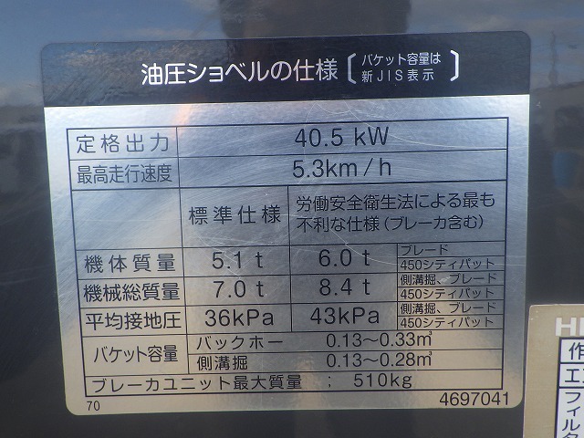 Specifications - HITACHI ZX70-3