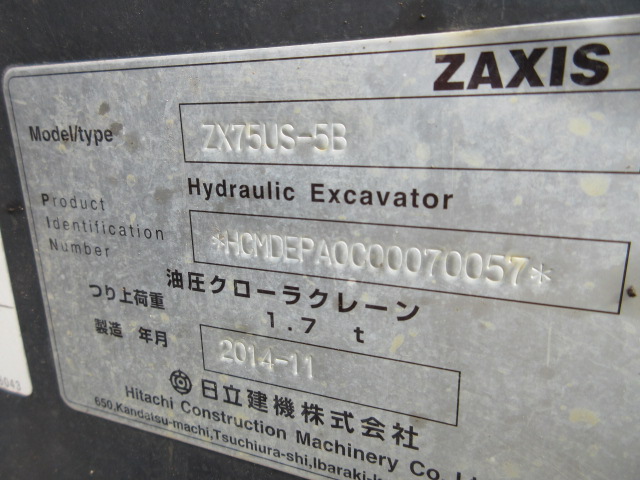 Specifications - HITACHI ZX75US-5B