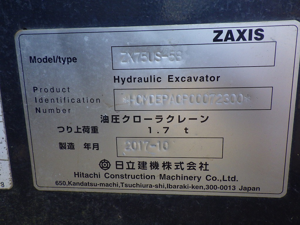 Specifications - HITACHI ZX75US-5B