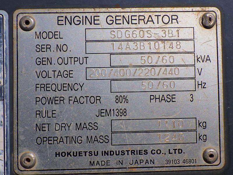 HOKUETSU GENERATOR, 60KVA