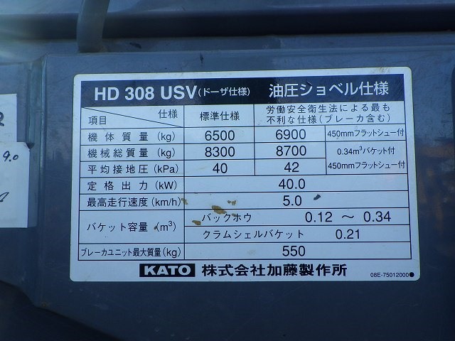 Specifications - KATO HD308USV