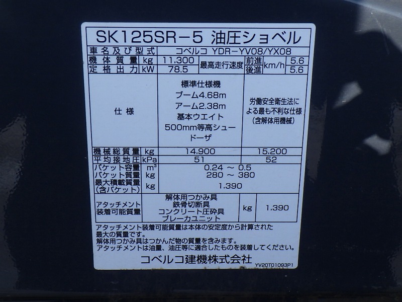 Specifications - KOB SK125SR-5