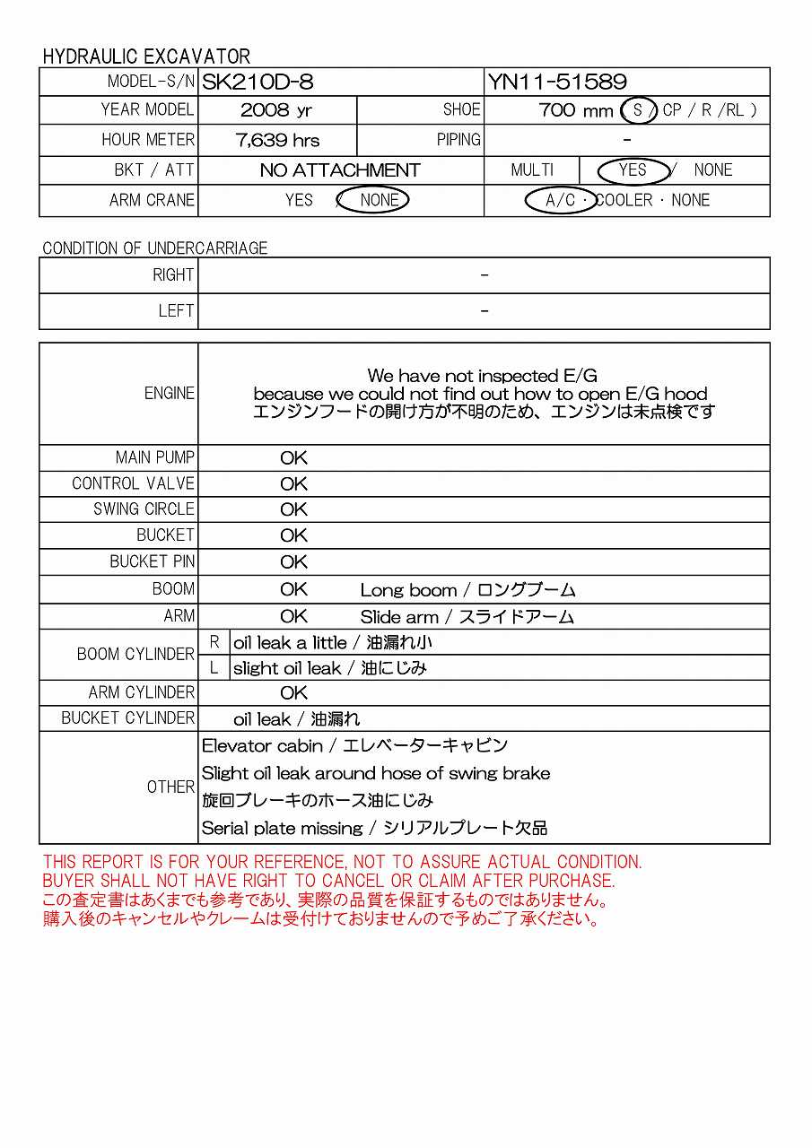 Specifications - KOB SK210D-8