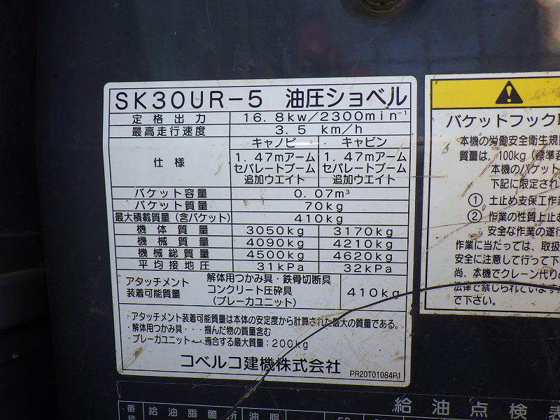 Specifications - KOB SK30UR-5