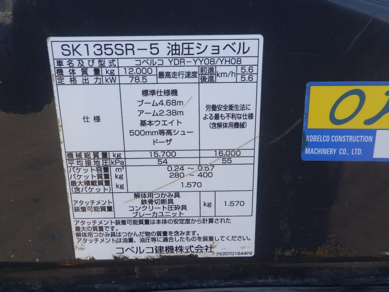 Specifications - KOBELCO SK135SR-5