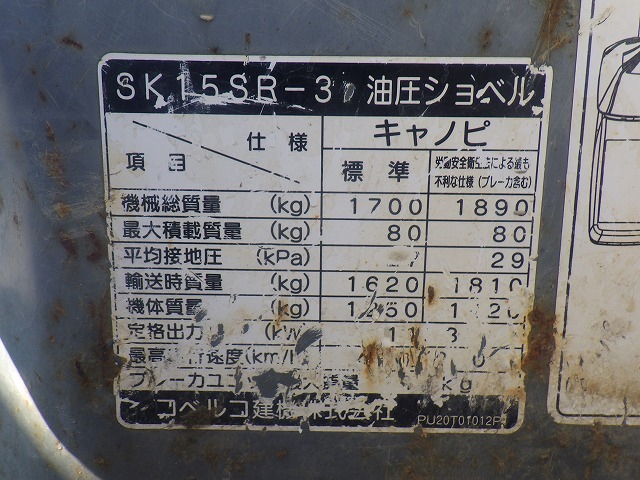 Specifications - KOBELCO SK15SR-3