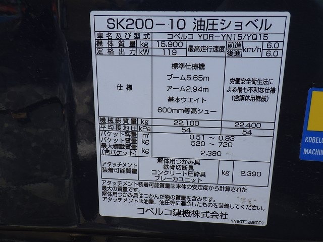 Specifications - KOBELCO SK200-10