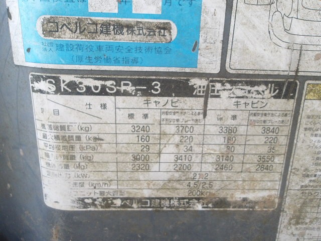 Specifications - KOBELCO SK30SR-3