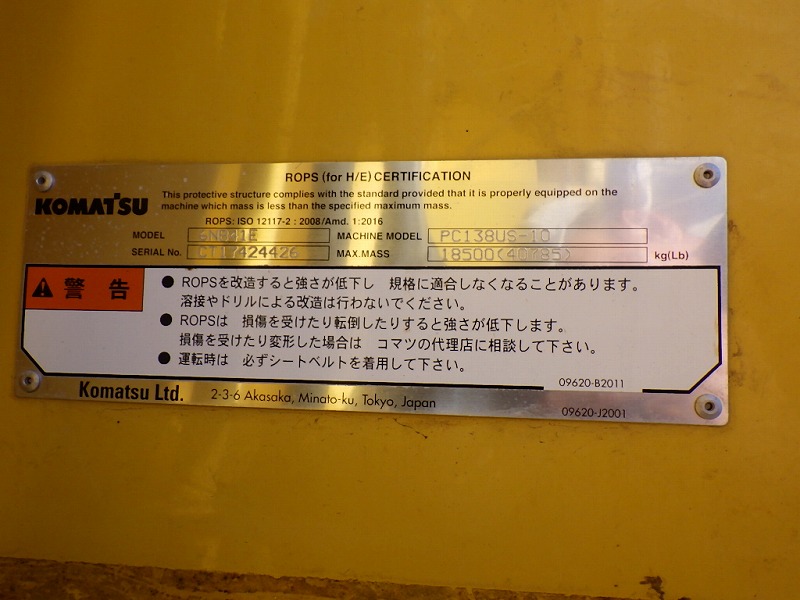 Specifications - KOM PC138US-10NM