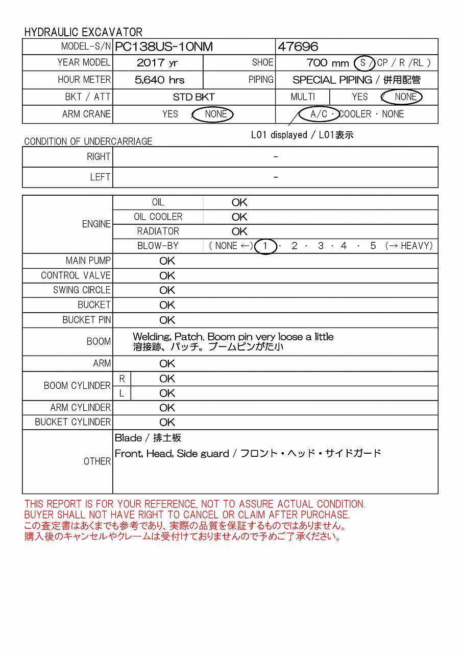 700G, SPECIAL PIPING, BLADE, SIDE GUARD, CAB GUARD, AC