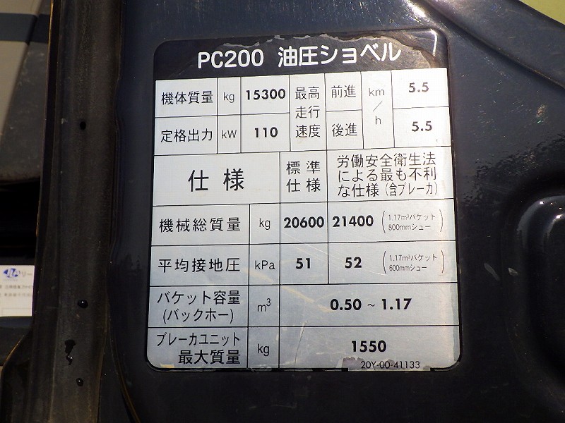 Specifications - KOM PC200-8N1