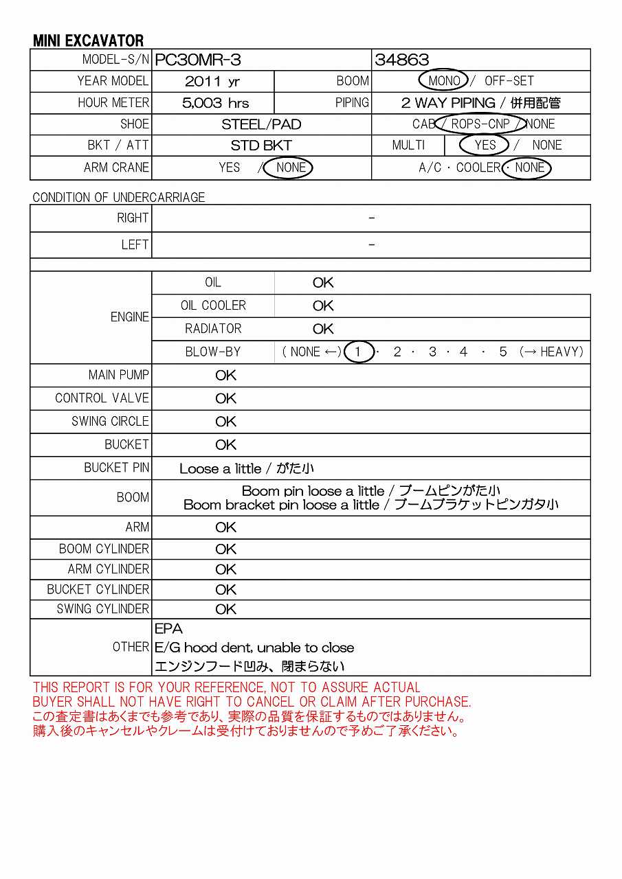 Specifications - KOM PC30MR-3