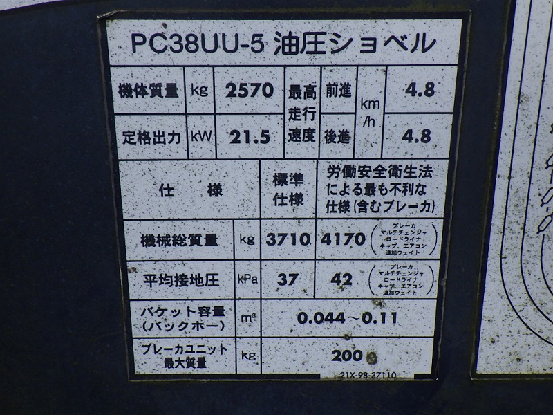Specifications - KOM PC38UU-5