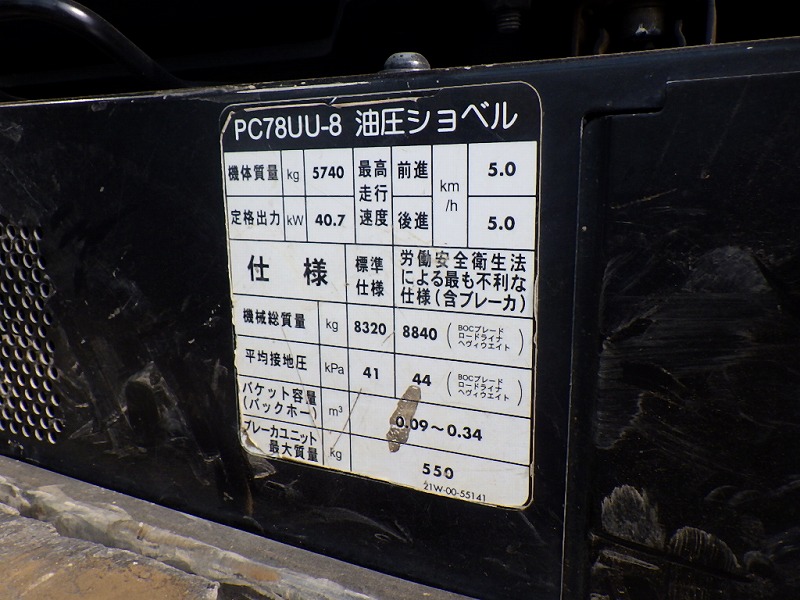 Specifications - KOM PC78UU-8