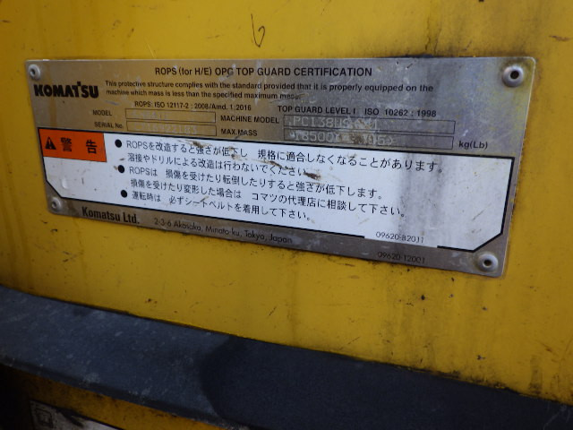 Specifications - KOMATSU PC138US-10