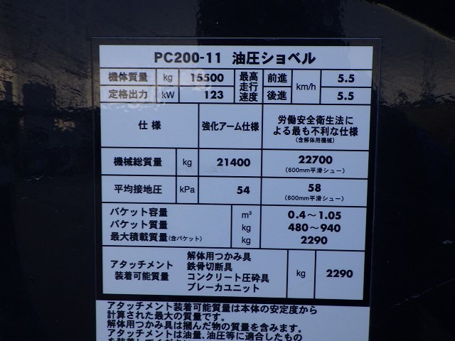 Specifications - KOMATSU PC200-11