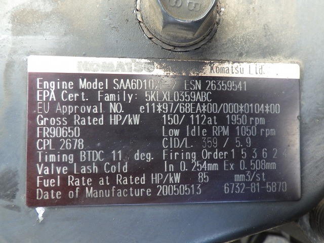 Specifications - KOMATSU PC200-7
