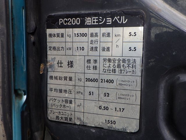 Specifications - KOMATSU PC200-8N1