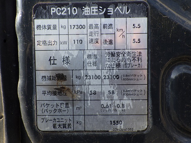 Specifications - KOMATSU PC210-8N1