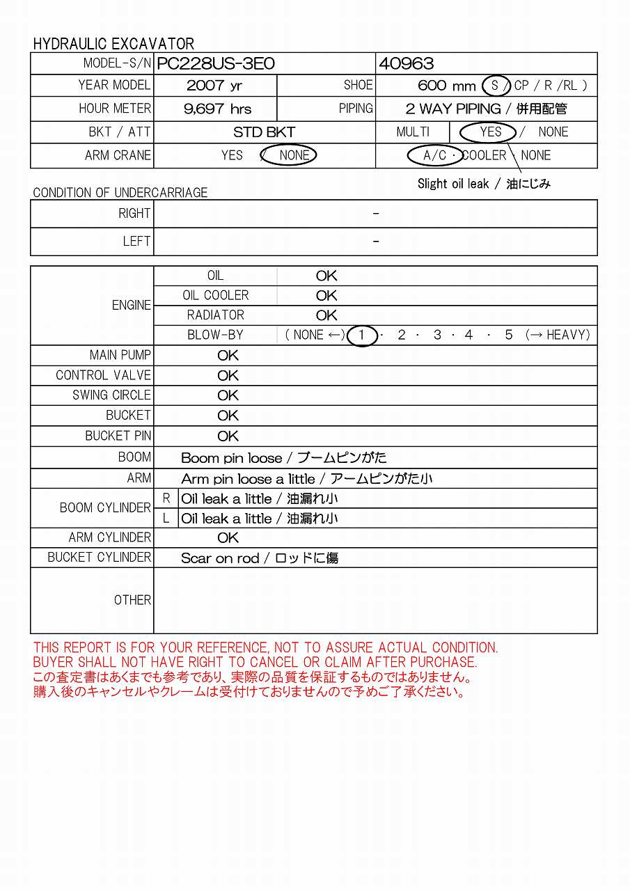 Specifications - KOMATSU PC228US-3E0