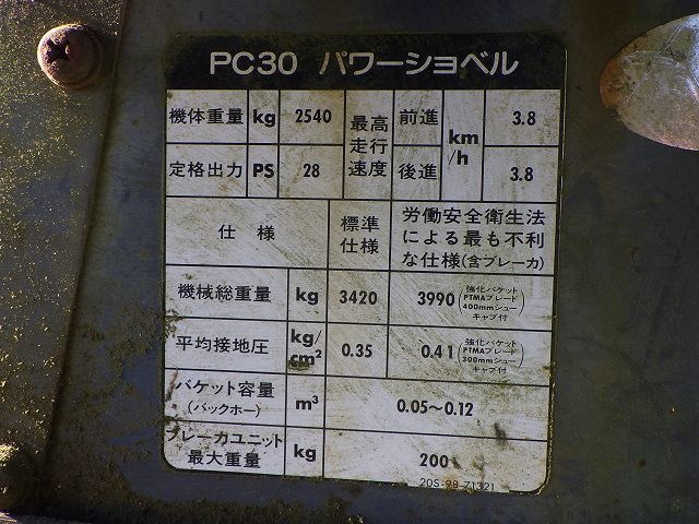 Specifications - KOMATSU PC30-7E