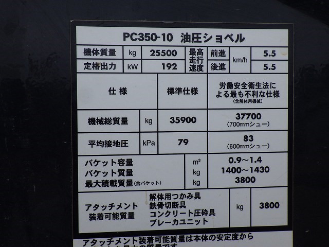 Specifications - KOMATSU PC350-10