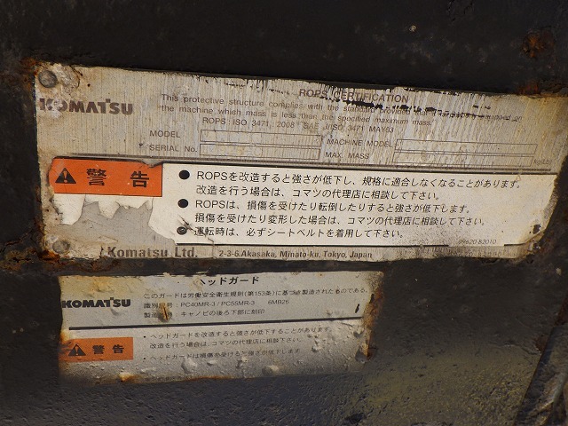 Specifications - KOMATSU PC40MR-3