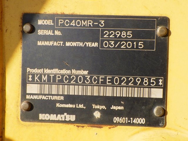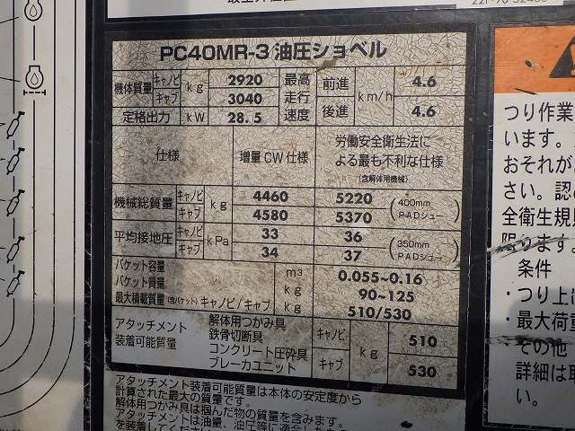 Specifications - KOMATSU PC40MR-3