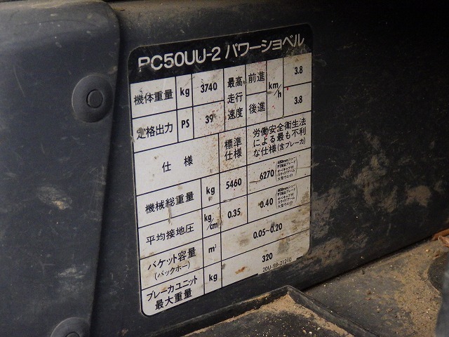 Specifications - KOMATSU PC50UU-2E