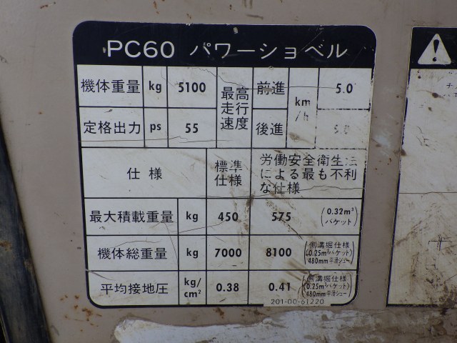 Specifications - KOMATSU PC60-6