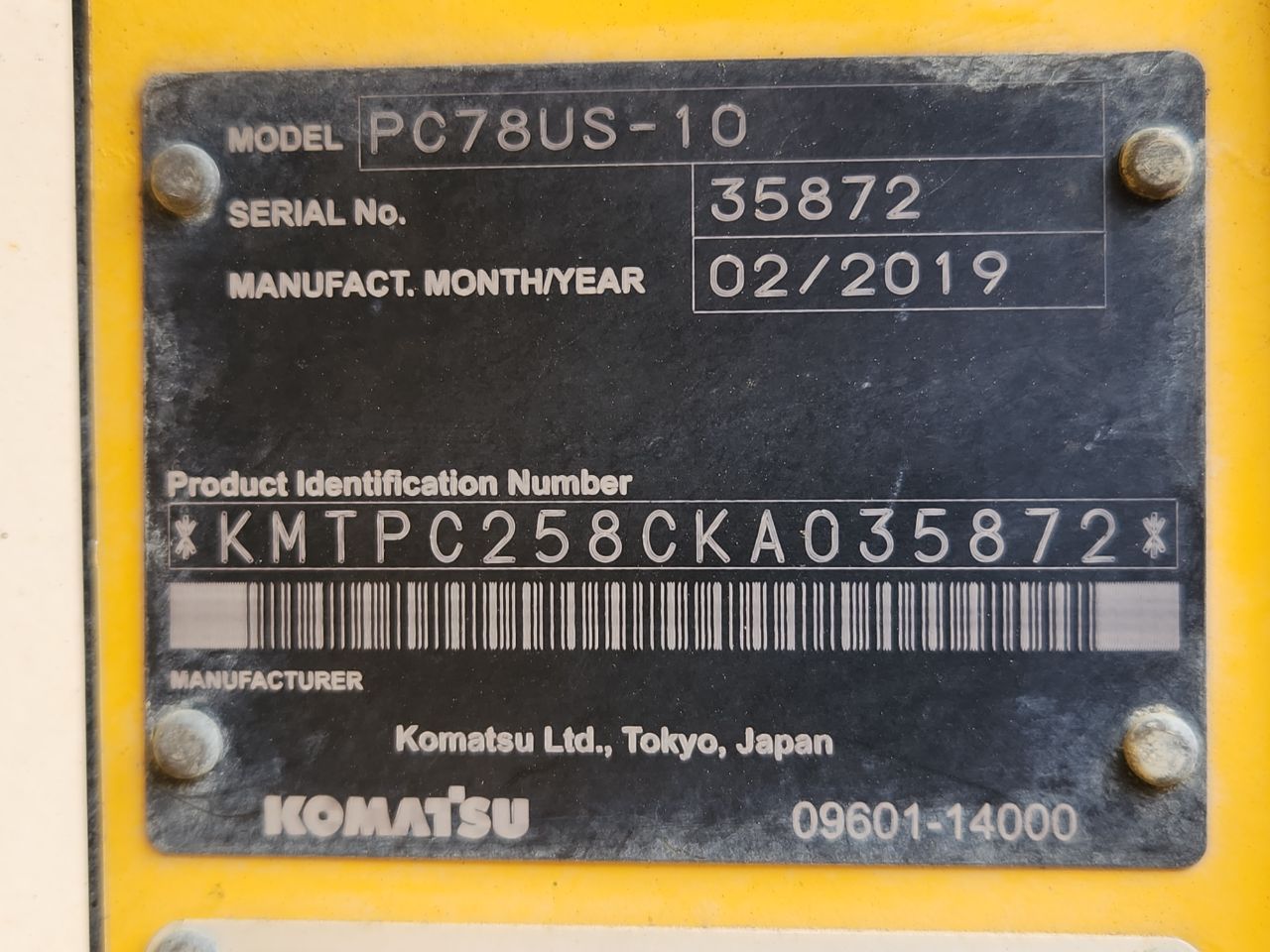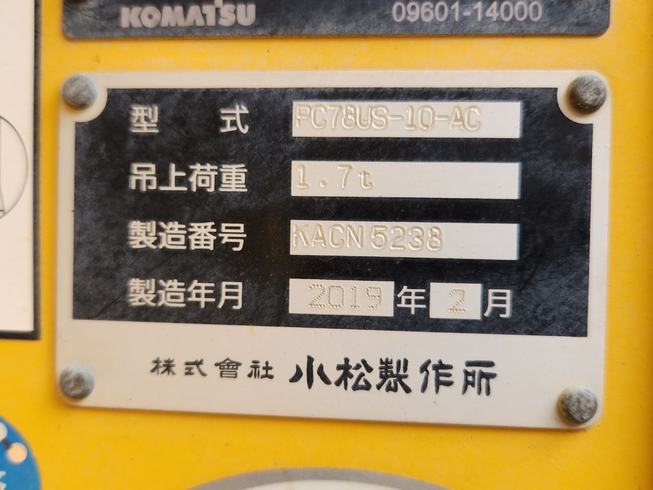 Specifications - KOMATSU PC78US-10