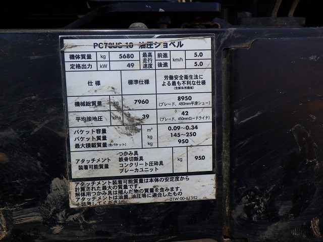 Specifications - KOMATSU PC78US-10