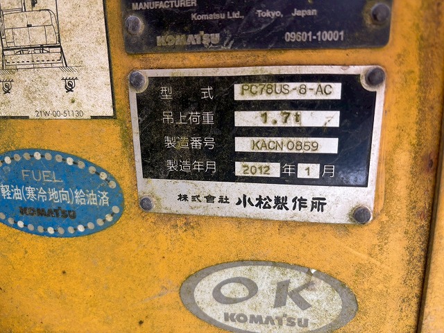 Specifications - KOMATSU PC78US-8