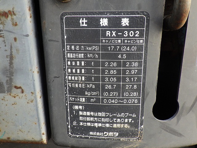 Specifications - KUBOTA RX-302