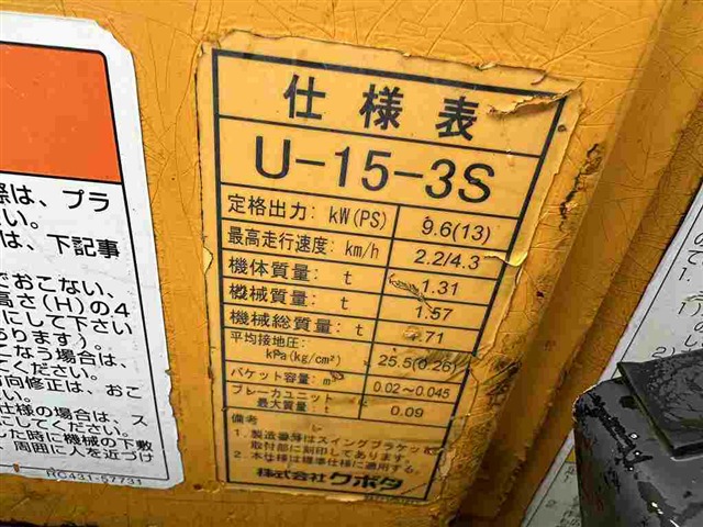 Specifications - KUBOTA U-15-3S