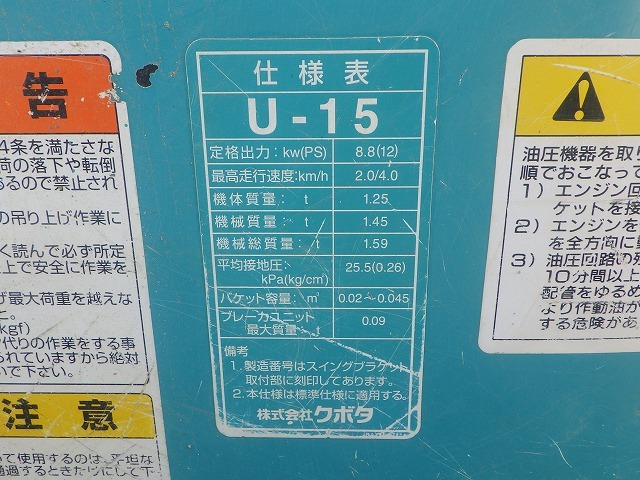 Specifications - KUBOTA U-15