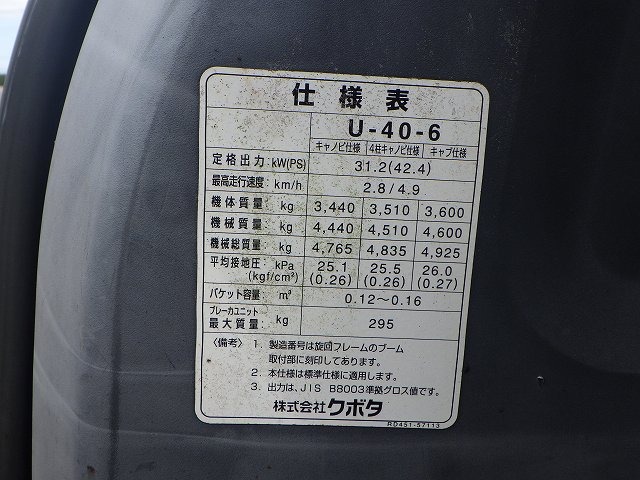 Specifications - KUBOTA U40-6