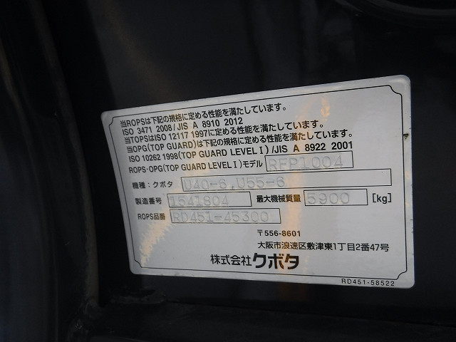Specifications - KUBOTA U40-6