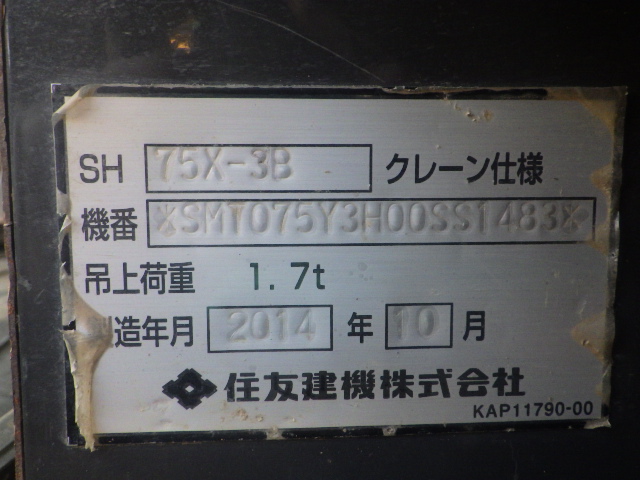 Specifications - SUMITOMO SH75X-3BU
