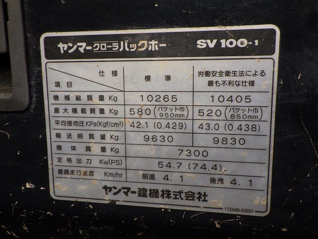 Specifications - YANMAR SV100-1