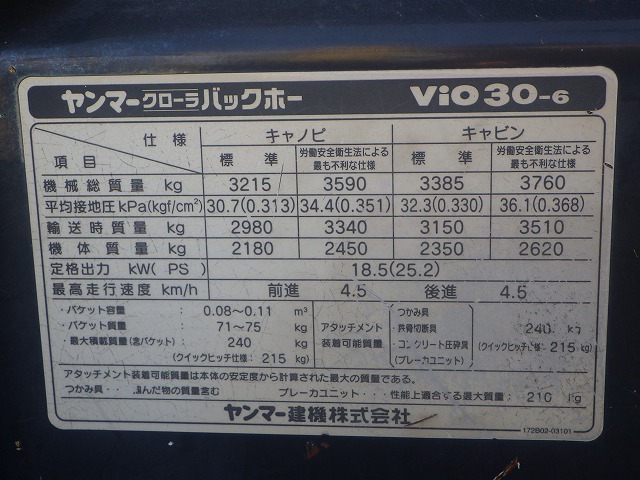 Specifications - YANMAR VIO30-6