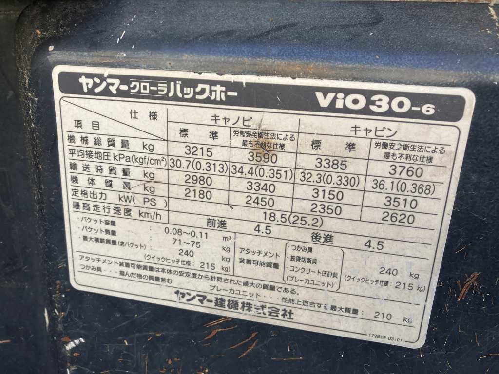 Specifications - YANMAR VIO30-6